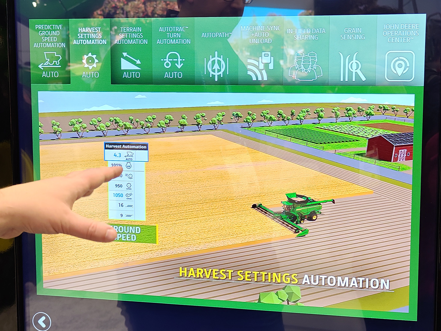 さらにAI機能として「予測型走行速度自動制御」と「収穫条件自動制御」も搭載。カメラとセンサーが前方の作物状態や水分、収量を推定しながら、走行速度やローター回転、ファン風量などをリアルタイムで自動調整する。なお、クラウド上の『John Deere Operations Center』に接続され、収穫量・作業ログ・機械状態などを自動送信し、リモート監視や解析、シーズン後の投資対効果算出を容易にする。