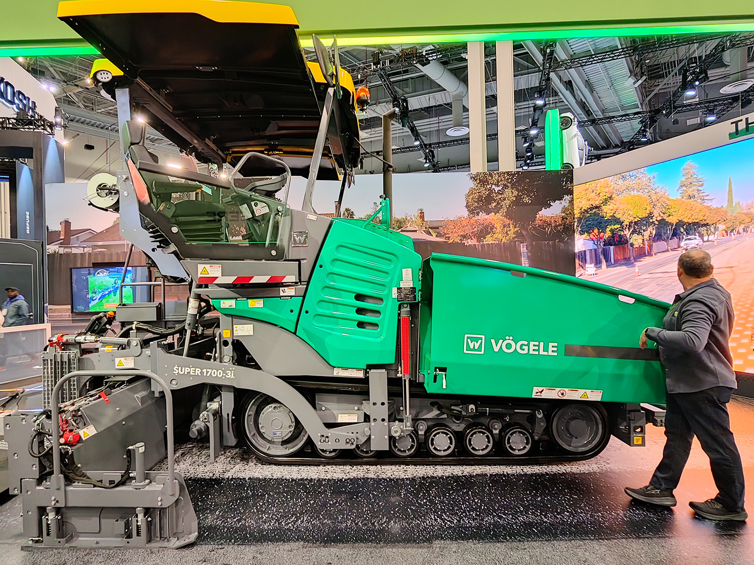 Vögeleと共同開発した新型ロードペーバー(アスファルトフィニッシャ)には、同社が開発した『Smart Pave』システムが搭載されており、ジョンディアのGPS・クラウド基盤を組み合わせることで、路面の高さをスキャンしながら、自動で走行経路・舗装幅・位置を制御する。路面状態の確認にはAIビジョン解析も使用される。舗装プロセスのデータ(施工厚、位置、CO2排出、燃料消費など)は『John Deere Operations Center』に送られる。