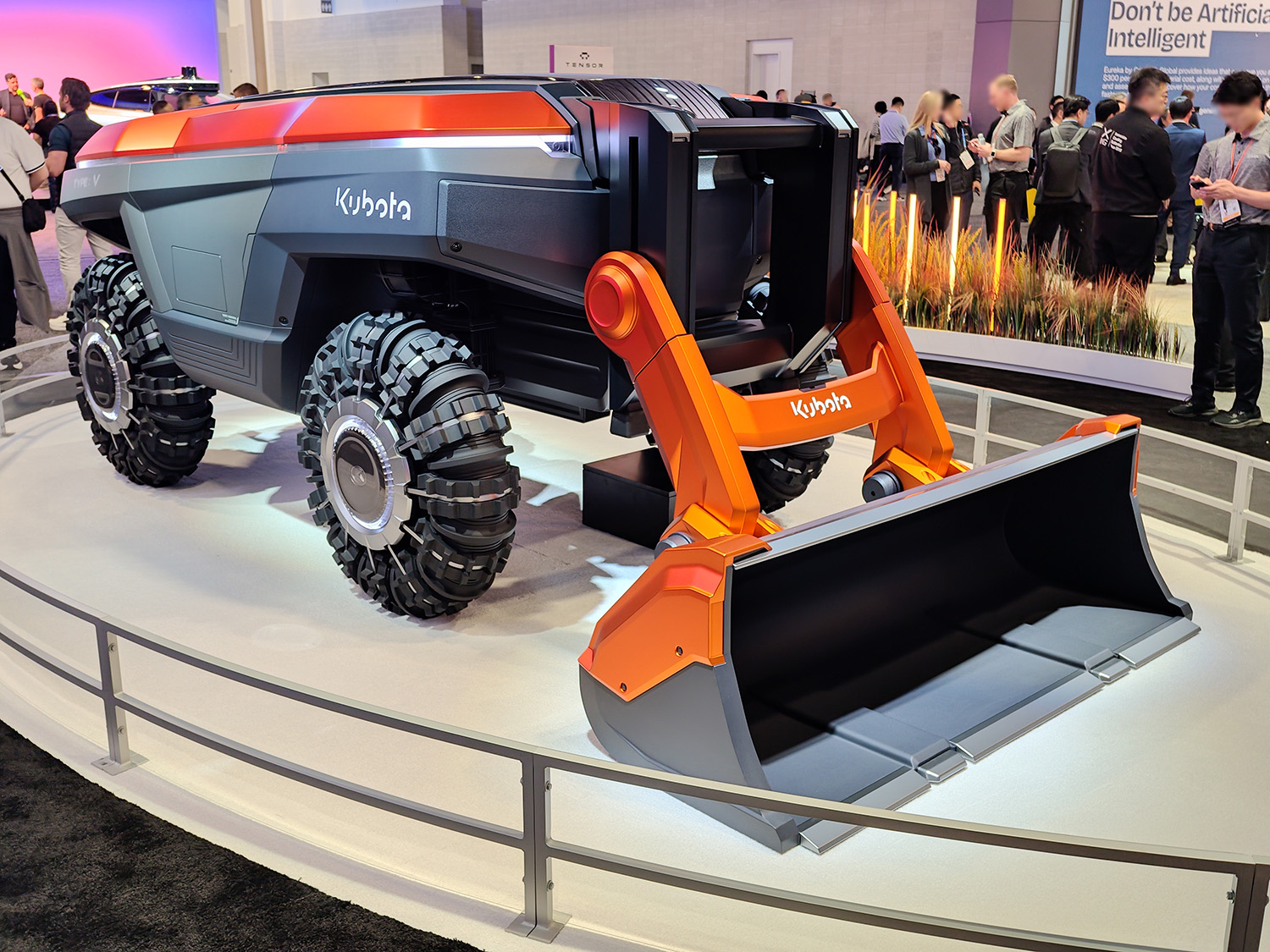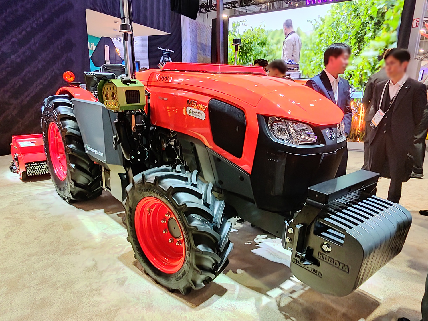 日本のクボタは、3年連続で出展を行っている。今回は大型の農業機械を展示したが、どちらかといえばAI・自律化・デジタルツインを組み合わせたスマート農業ソリューションとしての展示であったといえる。Agtonomyと共同開発した自律走行トラクターは、105.7馬力のディーゼルエンジンを搭載し、センサー群とAIベースの自律走行・障害物検知・作業パターン自動化を統合した量産品レディな状態で展示された。