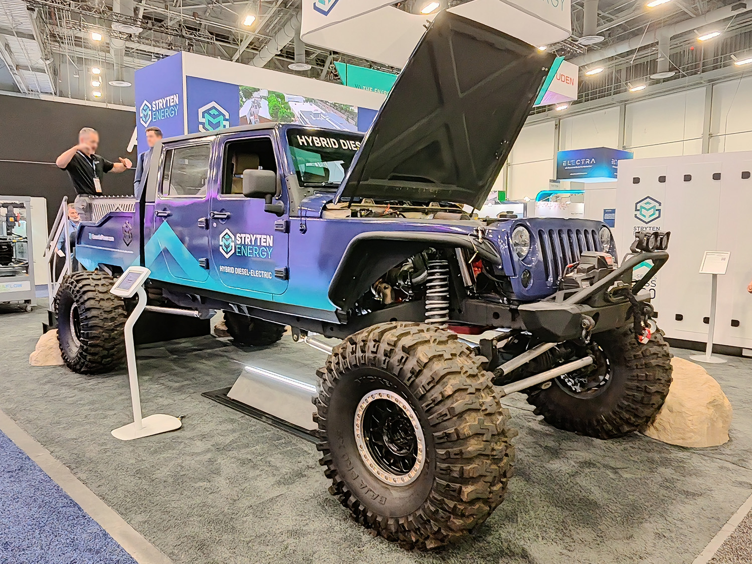 Strayten Energyは、ジープをベースにしたハイブリッドディーゼル・コンセプト自動車『Reluctance』を展示。災害時やオフグリッド環境で電力を供給する「走る発電所」であり、モバイルマイクログリッドとして広義のインフラ/エネルギー装置と紹介されていた。