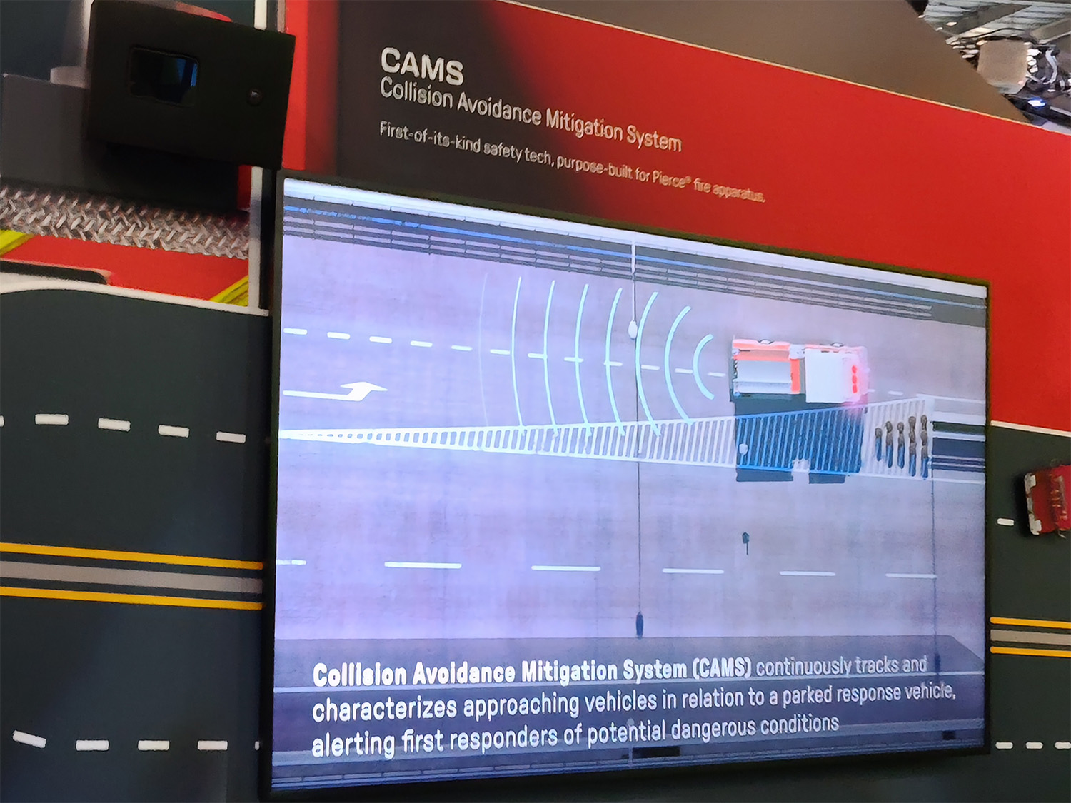 「住宅街」ゾーンでは『CAMS(Collision Avoidance Mitigation System)』を説明した。ごみ収集車やバス、消防車などに搭載される衝突回避支援で、カメラとセンサーで周囲の歩行者や車両を監視し、危険な接近を検知するとリアルタイムに警告、制動をサポートする。 またAI汚染物検知として、リサイクルごみに混入したバッテリーやスプレー缶などを検知するシステムのデモも行った。燃えるごみのラインに紛れ込んだ危険物を早期に見つけ、処理場火災や作業者事故のリスクを下げる。