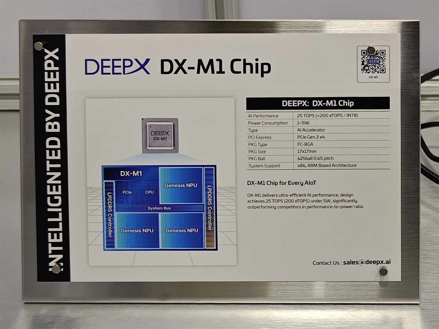 独自AIチップを開発している韓国のDEEPXは、2024年に量産を始めた『DX‑M1』を使った映像解析ソリューションなどをデモ。『DX-M1』は、エッジ向けサムスン5nmプロセスNPUで25TOPS、消費電力は2から5Wで、M.2モジュール版なども展開している。2026年中に1000万台超えの出荷を目指す。