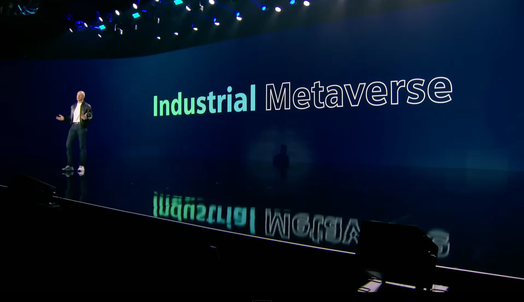 テーマは「インダストリアルメタバース」。デジタルツインを中核に、XR(クロスリアリティ)技術を掛け合わせることで、設計者やエンジニアがまるでその場にいるかのように仮想空間を体験・操作できる世界を描いた。