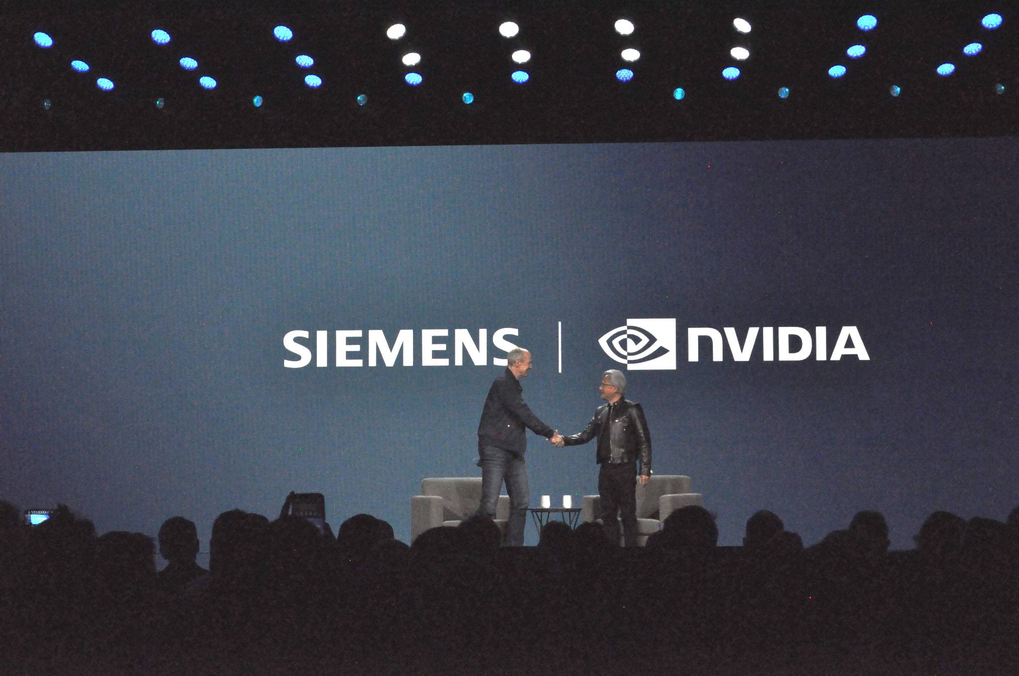 NVIDIAとの協業を発表し、同社のジェンスン・フアンCEOと握手を交わすブッシュCEO
