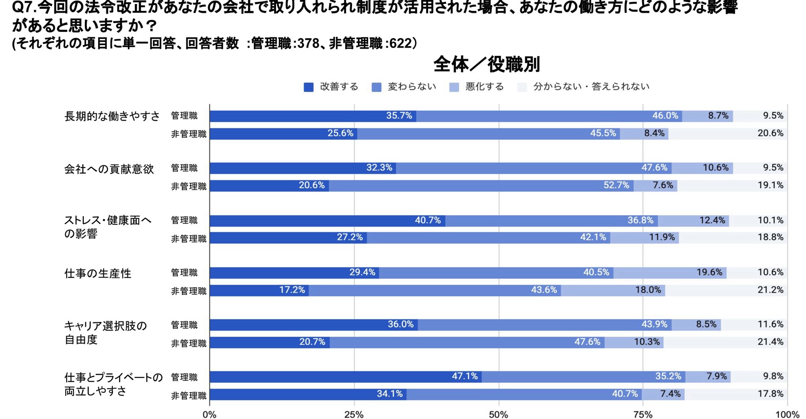 - 法改正はポジティブに捉えられるが、製造業の非管理職は生産性に懸念